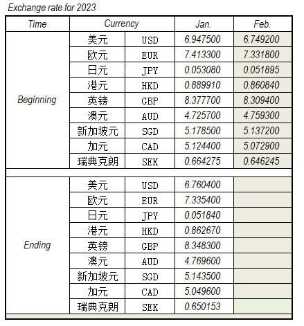 2023年1月外匯匯率,來源中國人民銀行供參考。