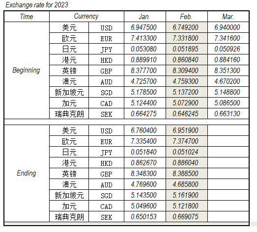 2023年2月外匯匯率,來源中國人民銀行供參考。